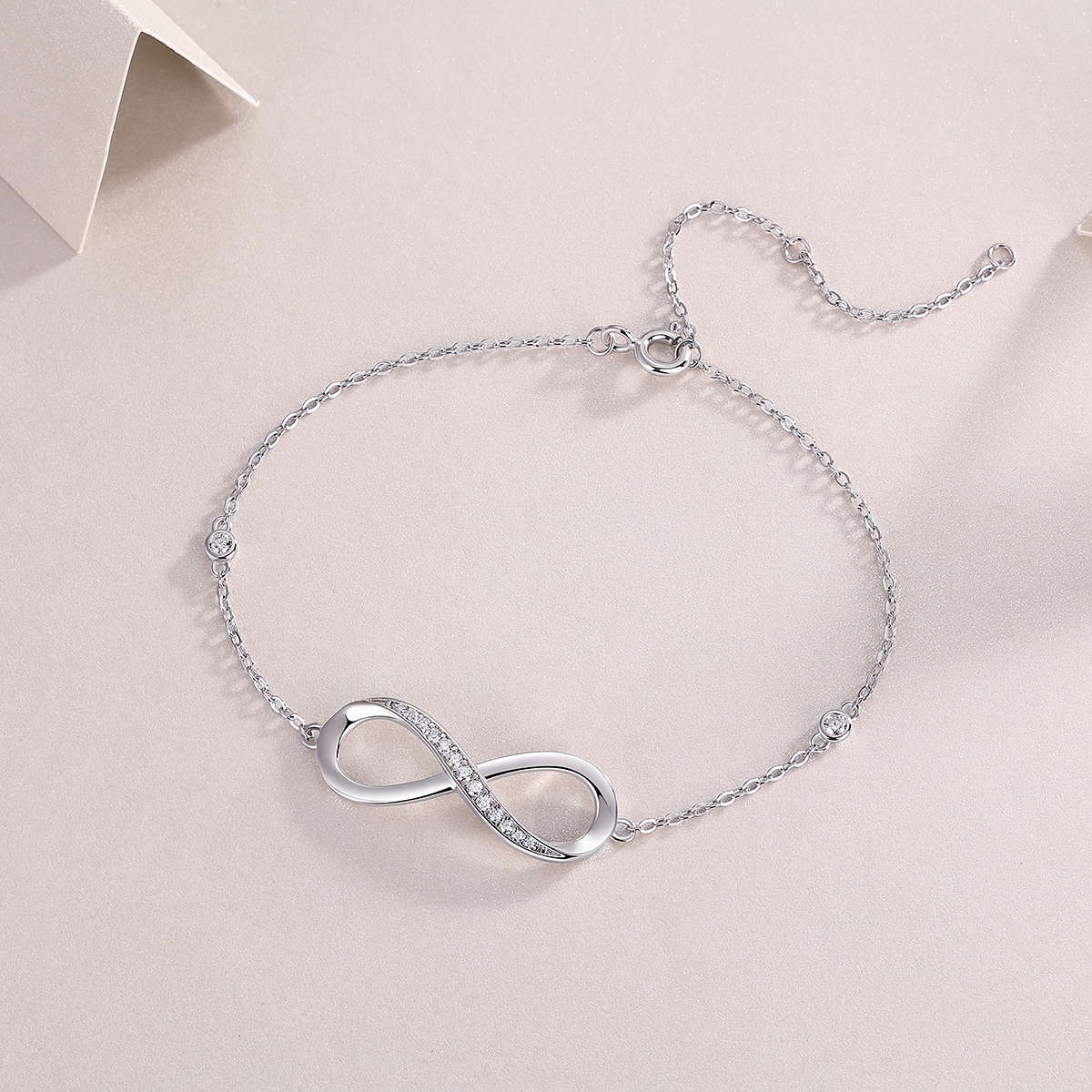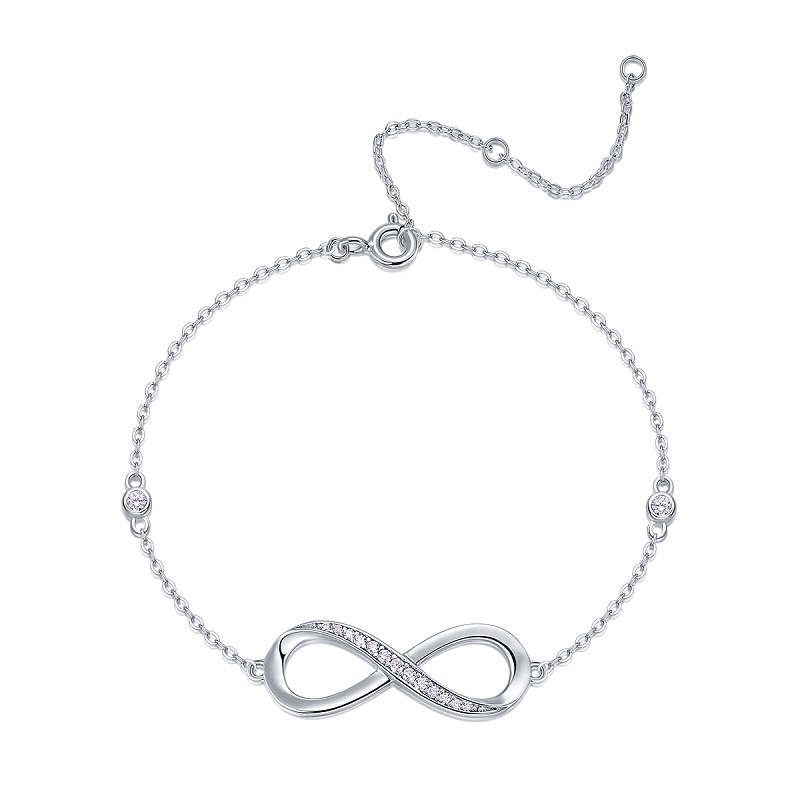 The Eternal Infinity Silver Bracelet. Crafted from high-quality 925 silver and set with brilliant moissanite, this standard infinity design offers a timeless look for any luxury lifestyle."