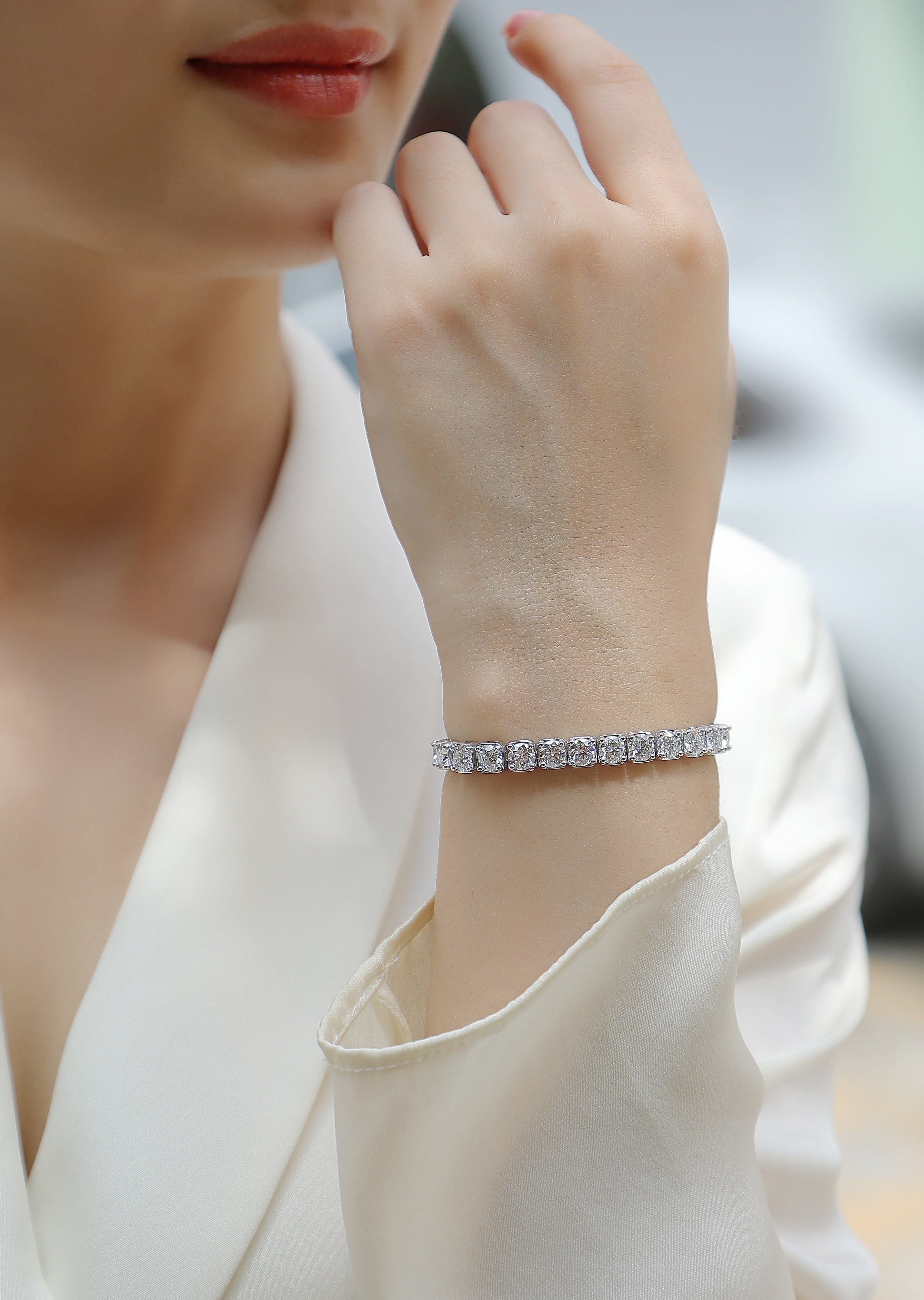 ​"A seamless line of brilliance. This signature tennis bracelet from the Delight Collection is crafted for the modern woman who values timeless elegance and premium quality."