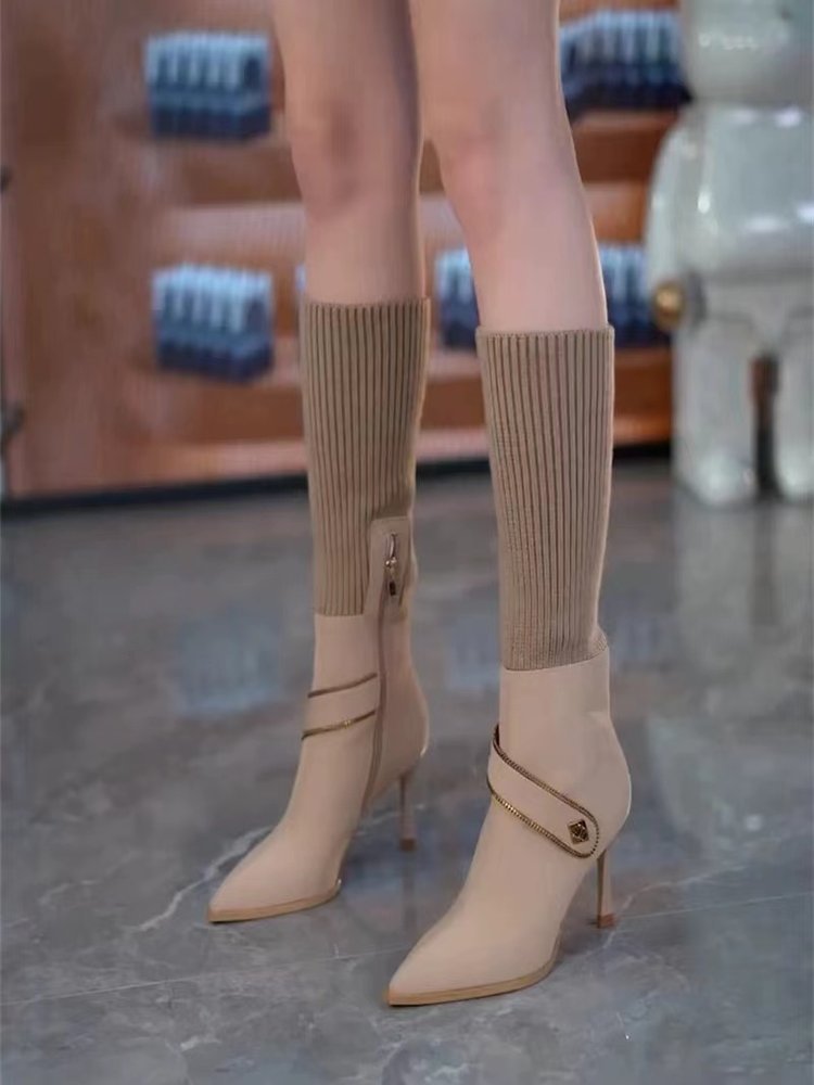 Delight Signature: Urban Elegance Stretchy Boots. High-fashion meets a custom fit. These stretchy knit boots feature a thin heel and slim silhouette, perfect for an elevated luxury lifestyle look."
